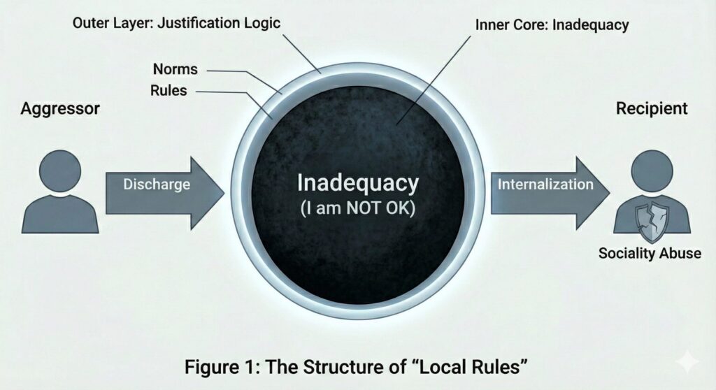 A Local Rule is a state of Inadequacy imposed on others, disguised as something reasonable—such as a rule, norm, or common sense. Although it appears legitimate on the surface, it is, in fact, a projection of another person’s unresolved Inadequacy.